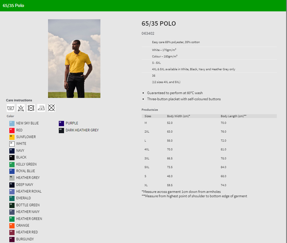 Available in 20 vibrant colours and sizes S to 5XL, this versatile polo provides the perfect canvas for print and embroidery, ensuring your logo or design stands out beautifully.